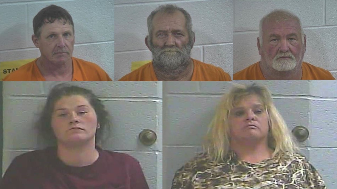 Authorities arrested 55-year-old Kevin Stowe, 57-year-old Ronnie D. White, 56-year-old Lynne E. Bailey Jr., 29-year-old Kaitly R. Moore and 52-year-old Linda K. Morris.