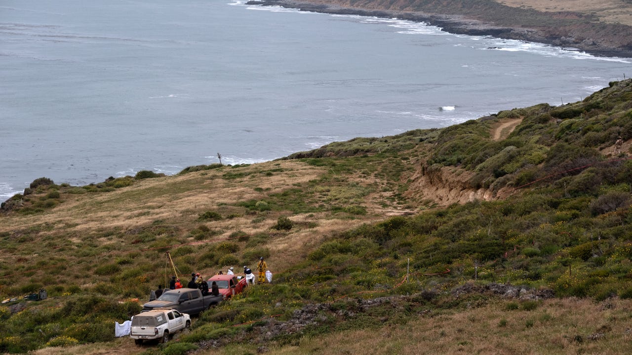 Rescue workers, forensics, and prosecutors work in a waterhole where human remains were found near La Bocana Beach, Santo Tomas delegation, in Ensenada, Baja California State, Mexico, on May 3, 2024. (Photo by Guillermo Arias/AFP via Getty Images)