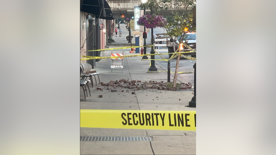 Authorities said police responded around 7 p.m. Saturday to reports of bricks falling from a building at 104 E. Galena Blvd. onto sidewalks and roadways. Residents from 102 and 104 E. Galena Blvd. were evacuated as a precaution.
