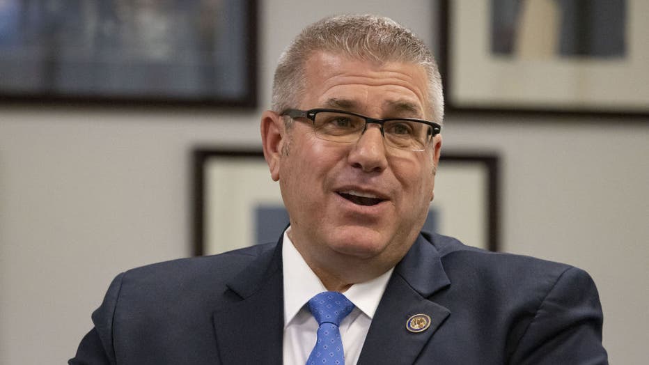 State Sen. Darren Bailey, the Republican nominee for Illinois governor, talks with the Chicago Tribune Editorial Board on Sept. 29, 2022. (Brian Cassella/Chicago Tribune/Tribune News Service via Getty Images)