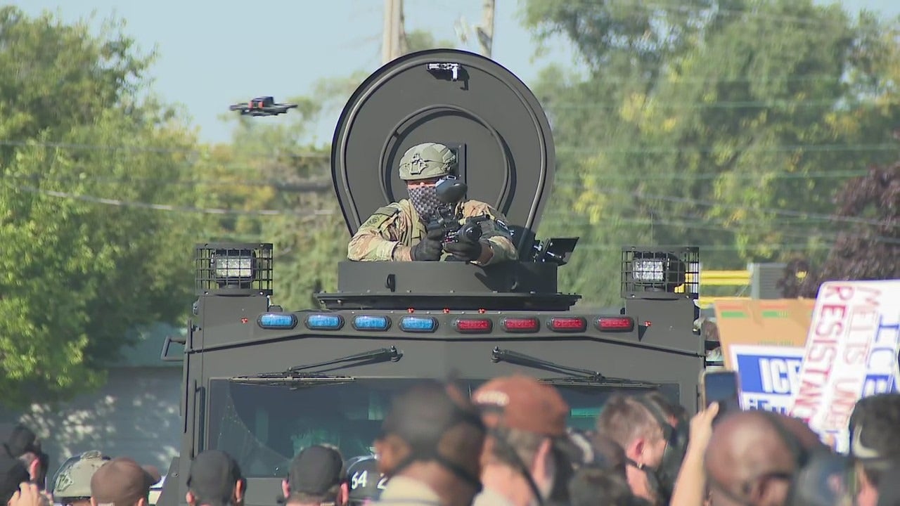 Department of Homeland Security Kristi Noem and U.S. Customs and Border Protection Chief Patrol Agent Gregory K. Bovino also made an appearance on the roof of the ICE facility surrounded by armed personnel. An armored truck was also present at the scene.