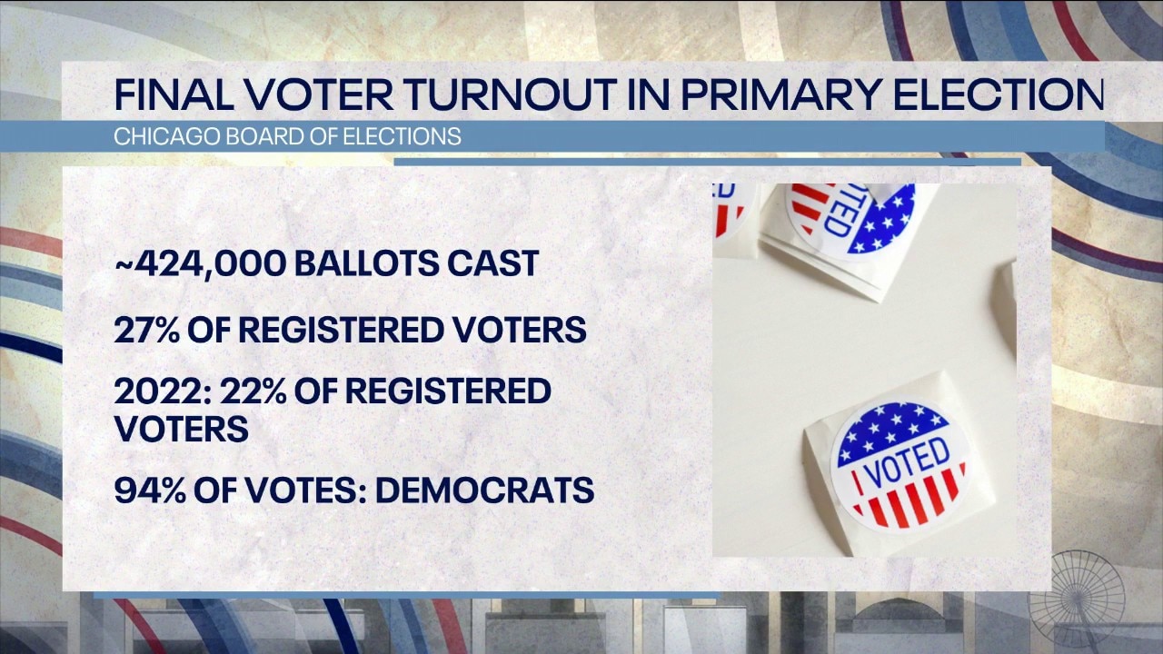 In total, Chicago saw 424,564 ballots cast, which resulted in a 27.3% turnout rate, according to the final data.