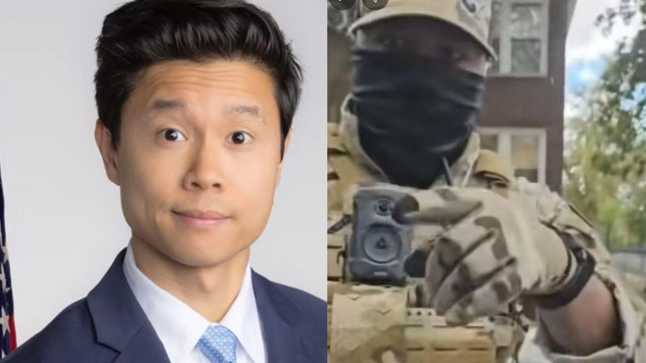 In a video posted on Huynh’s Facebook page, the lawmaker can be heard repeatedly identifying himself while masked agents in camouflage uniforms are standing near the car. One of the agents is seen holding up his phone to the car’s windshield as if he were recording or taking photos.