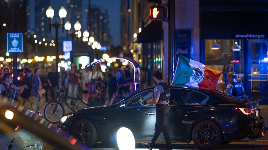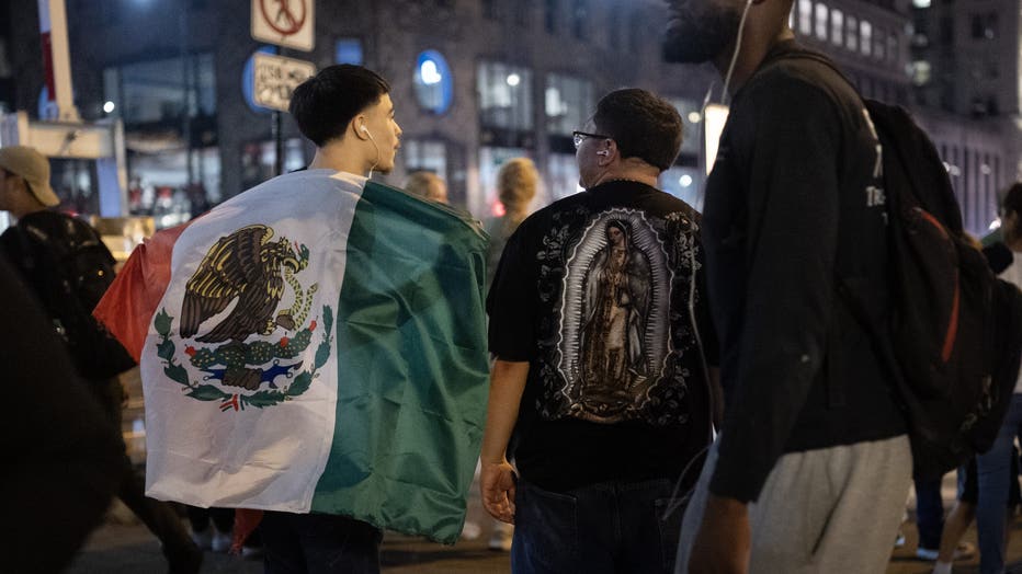 Several people were seen in the city's downtown area on Saturday night holding up Mexican flags. There was an elevated police presence in the downtown area to ensure traffic would flow smoothly.