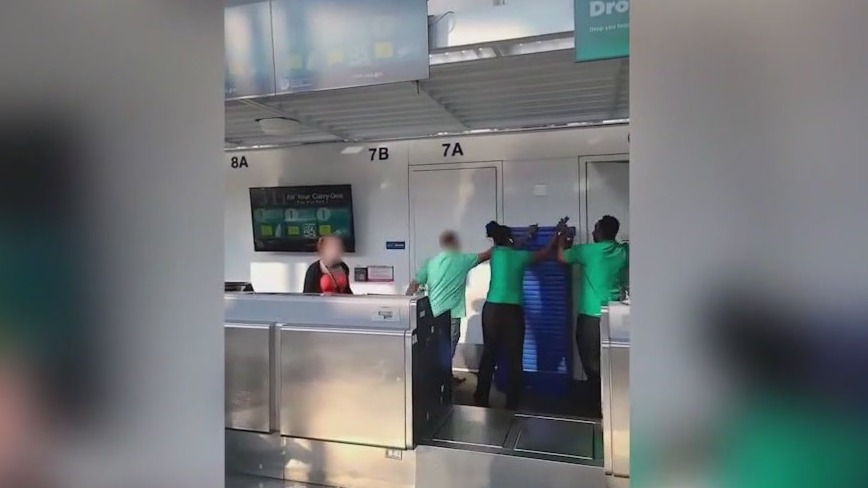 CHICAGO - Shocking new video has surfaced of a woman causing a scene at O'Hare International Airport last month, where she was caught on camera fighting with Frontier Airlines staff after she was reportedly not allowed to board her flight.