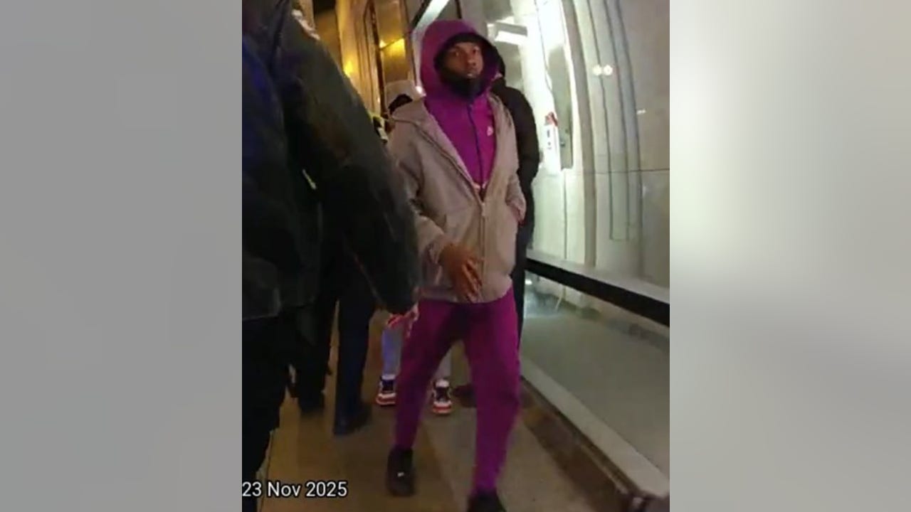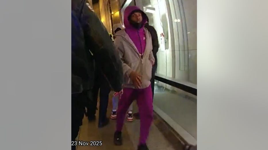Chicago police released a video of the person of interest on Wednesday morning. He was seen wearing a purple outfit with a gray hoodie. One snippet appears to show him pointing a gun at a crowd of people.