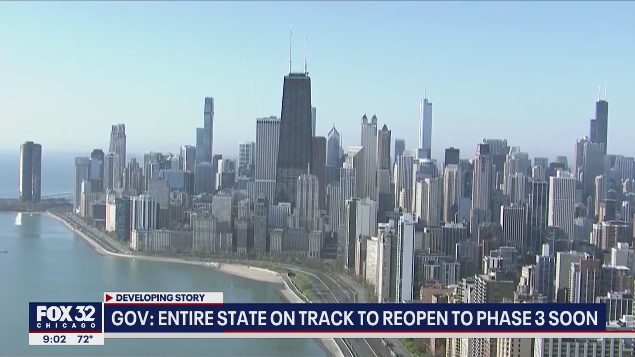 Still, Governor JB Pritzker says the state, for now, is on track to enter “Phase 3” of his reopening plan in two weeks.