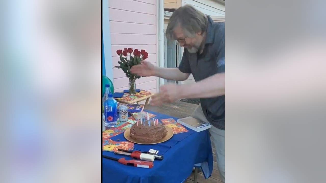 EUREKA, Calif. - Many people have been forced to adapt to a new reality because of the coronavirus pandemic, including one California man who demonstrated an inventive way of “blowing” out the candles on his birthday cake.