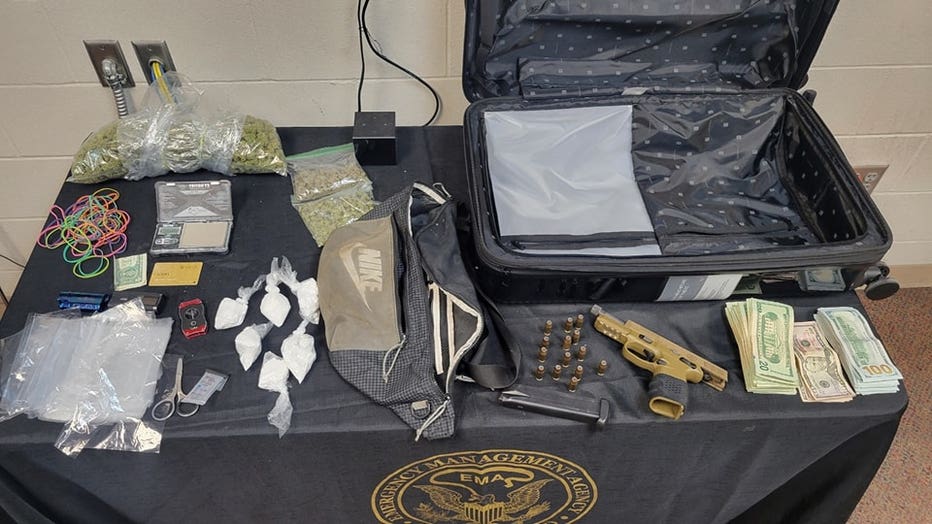 During the search, police found three individually wrapped bags of marijuana weighing 453.3 grams, 6 bags of cocaine weighing 172.6 grams, 50 clear plastic bags, a digital scale, $7,000 in cash, and a handgun.