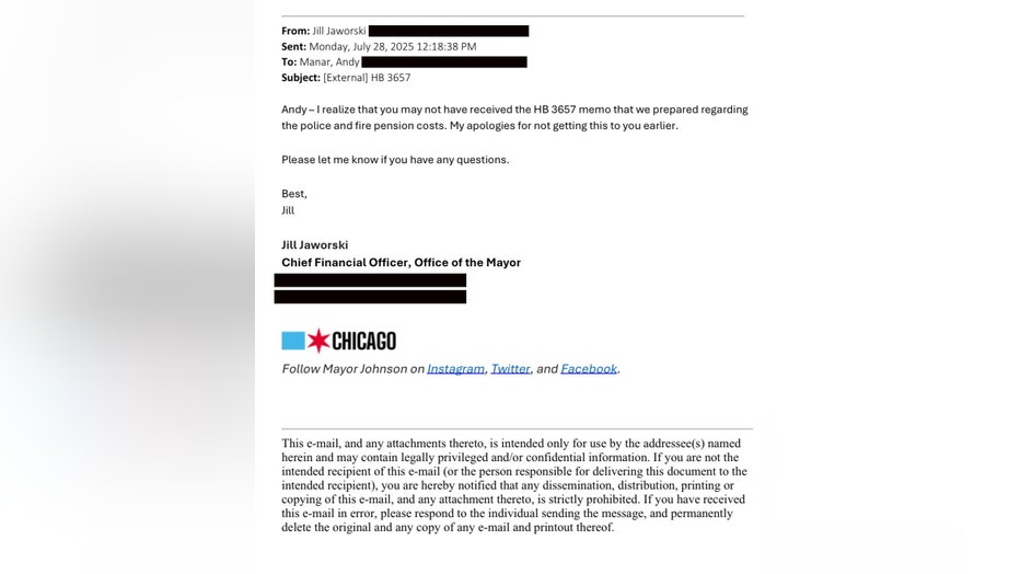 But an internal memo obtained by Fox 32 Chicago shows that the city's Chief Financial Officer Jill Jaworski warned Andy Manar, a top official in Pritzker's office, about the financial ramifications of the bill.