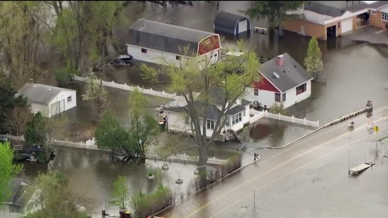 On Tuesday afternoon, Vogeler pulled a Fox Chicago crew along Eastwood Avenue, which is closed to traffic due to the high flood water. Some residents in the area park their cars on a side street, and either walk to their homes wearing waders, or travel in a canoe.