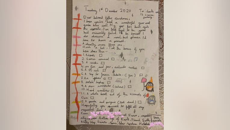 A 9-year-old girl from Essex, U.K., wrote a letter to Father Christmas earlier this month admitting that she hasn’t been particularly good this year. However, she still requested a list of lavish gifts including Apple Airpods, a trip to France and a penguin and panda -- as long as they’re “not dead.”