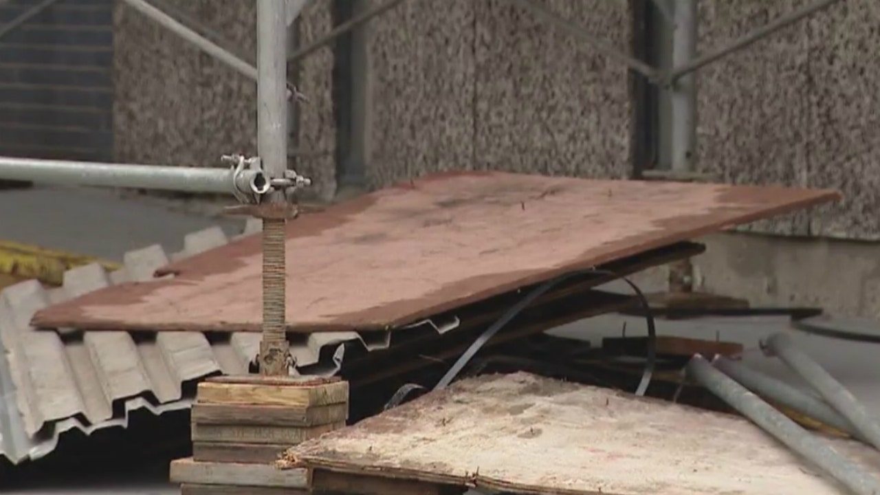 In the Loop, a person was injured by falling debris from a scaffold near Willis Tower. Photos showed a whole smashed through a cab’s windshield.