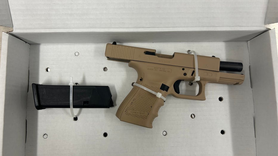 They found a tan-colored handgun lying on a kitchen counter in plain view that appeared to have been recently fired.