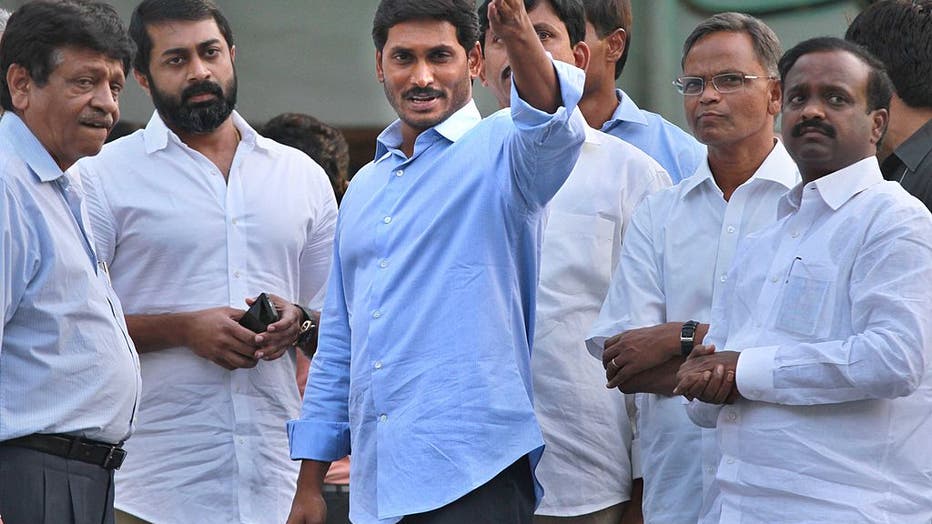 FILE - YSR Congress chief Y.S. Jagan Mohan Reddy after meeting with Mr. Rajnath Singh, came here to congratulates him for BJP-led National Democratic Alliance's (NDA) massive victory in Lok Sabha polls 2014, at his residence on May 19, 2014 in New De (Arun Sharma/Hindustan Times via Getty Images)