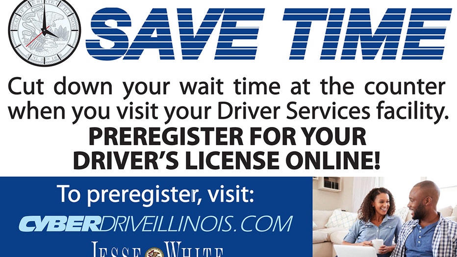 Preregistration at www.cyberdriveillinois.com allows residents to complete certain forms before arriving to the facility, thereby saving data entry usually done in-person, according to a statement from White’s office.