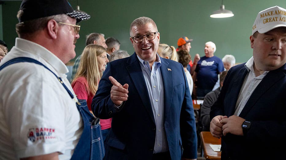 Former state Sen. Darren Bailey greets people after announcing his Republican primary bid for Illinois governor, Sept. 25, 2025, at Turner's Table in Carterville, Illinois. (Brian Cassella/Chicago Tribune/Tribune News Service via Getty Images)