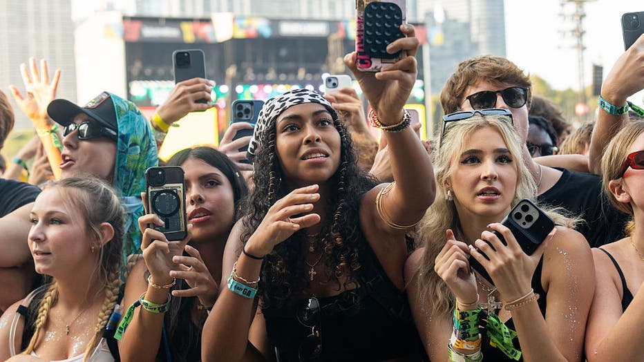 CHICAGO, ILLINOIS - AUGUST 03: Fans watch Ian perform onstage during Lollapalooza at Grant Park on August 03, 2025 in Chicago, Illinois. (Photo by Natasha Moustache/Getty Images)