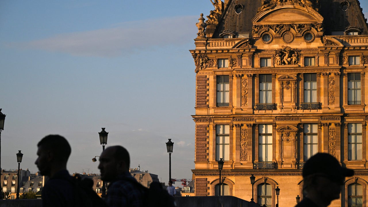 Pedestrians walk in front of Louvre Museum in central Paris, on October 10, 2023. (Photo by MIGUEL MEDINA/AFP via Getty Images)