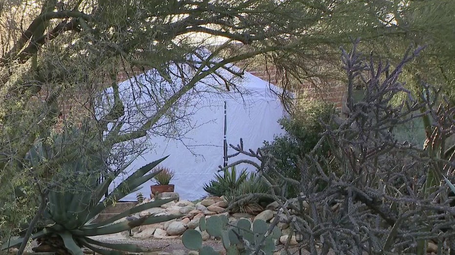 Investigators in unmarked cars showed up at Guthrie's home, and the front door was blocked off by a large canopy.