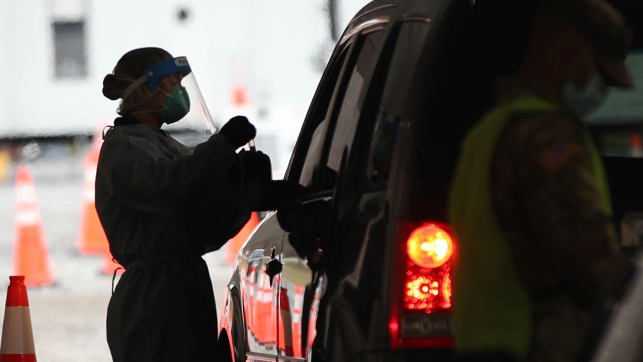 FILE - A coronavirus drive-through testing center is seen in Bear Mountain, N.Y. on Nov. 25, 2020.