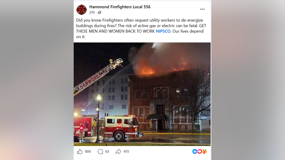 Hammond Firefighters also posted on Facebook supporting USW during the NIPSCO lockout saying,