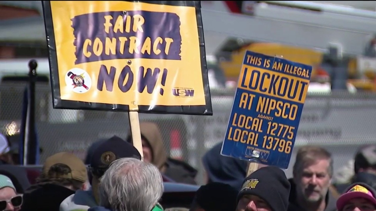 On Tuesday, hundreds of locked-out USW workers protested outside of NIPSCO's office in Hammond, holding signs, demanding to go back to work, and what they consider to be a fair contract.