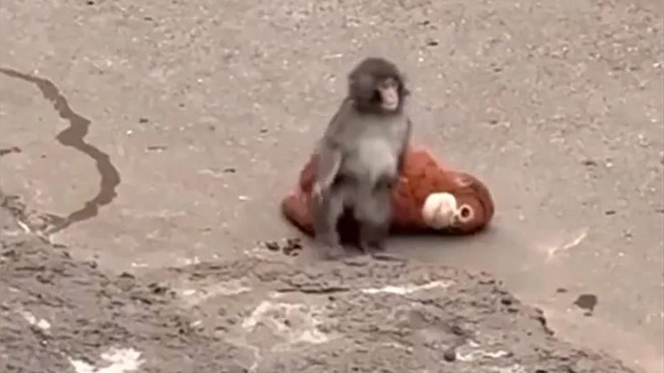 "It is cute to see the little monkey dragging the stuffed animal around but it is very sad at the same time," one observer wrote on X.