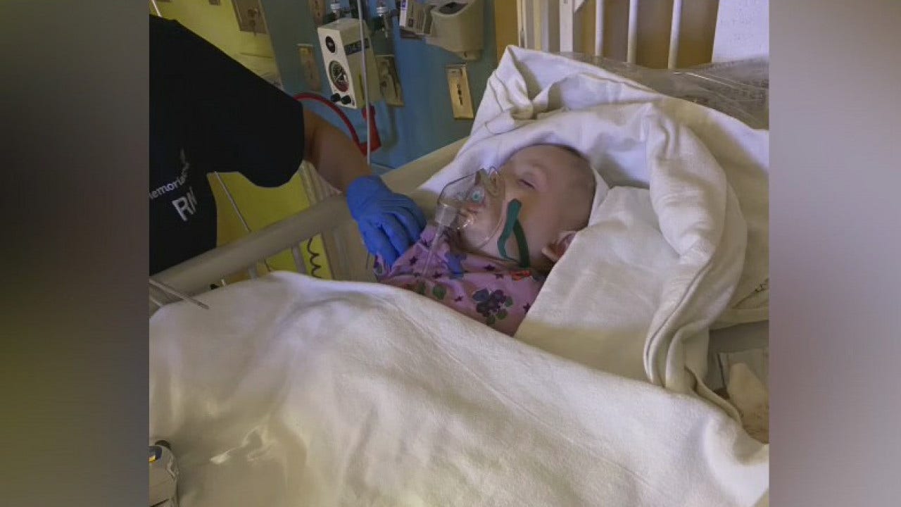 But little Evie is far from healed. She is still in the hospital after a week in the ICU and she hasn’t been able to eat or drink on her own.