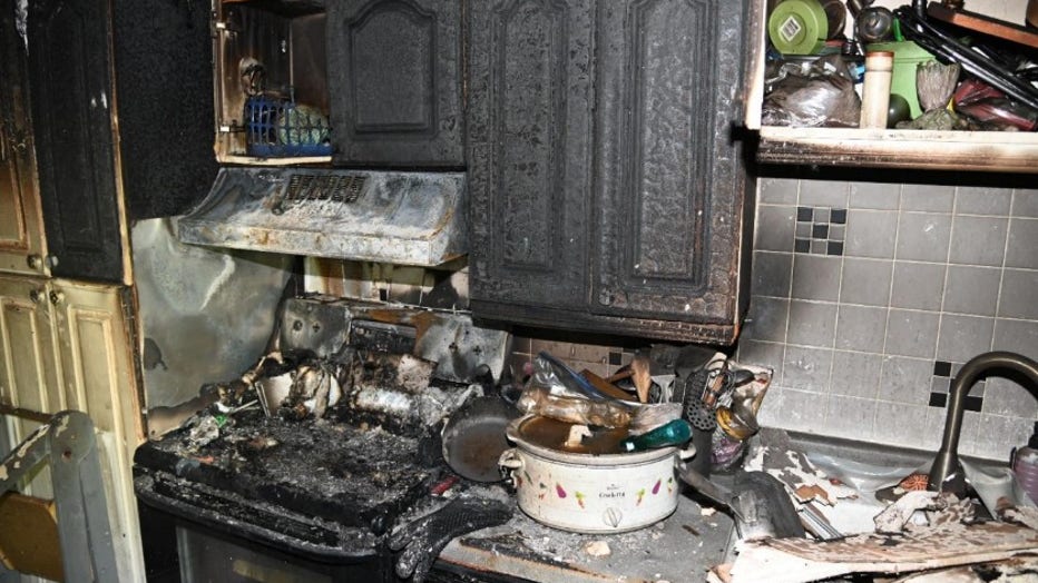 Pictured is the kitchen of the apartment following the fire.