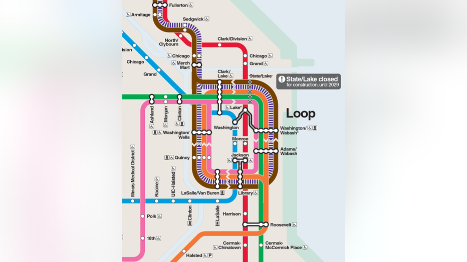 Trains in the Loop will still operate, but riders will need to use the fully accessible stations at Washington/Wabash and Clark/Lake. The Lake Red Line subway station will remain open.