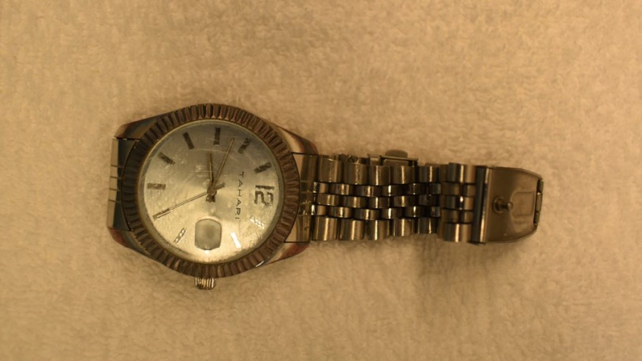 He was wearing light blue drawstring shorts, an olive green Adidas hat, size 7 Nike shoes, a silver-colored metal ring and a Tahari watch.