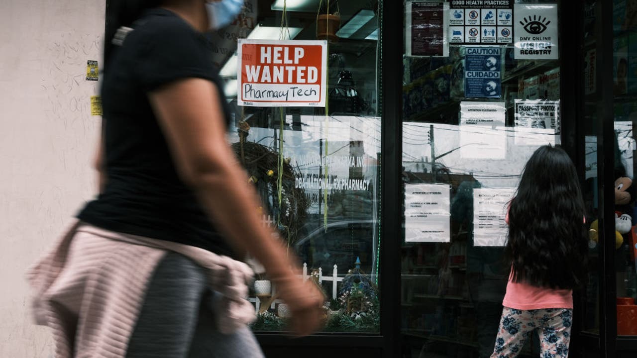 FILE - People walk by a “Help Wanted” sign in the Queens borough of New York City on June 4, 2021 in New York City. (Photo by Spencer Platt/Getty Images)