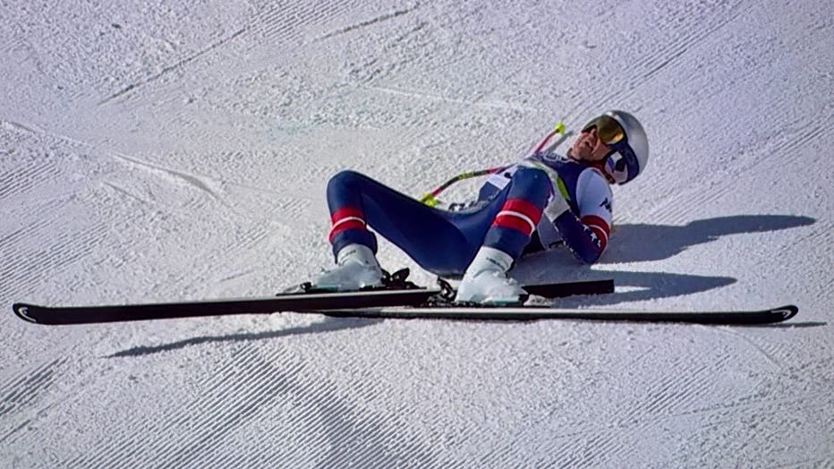 CORTINA D'AMPEZZO, ITALY - FEBRUARY 08: (EDITOR’S NOTE: This Handout image/clip was provided by a third-party organization and may not adhere to Getty Images’ editorial policy.) Lindsey Vonn of Team United States crashes during the Women's Downhill o