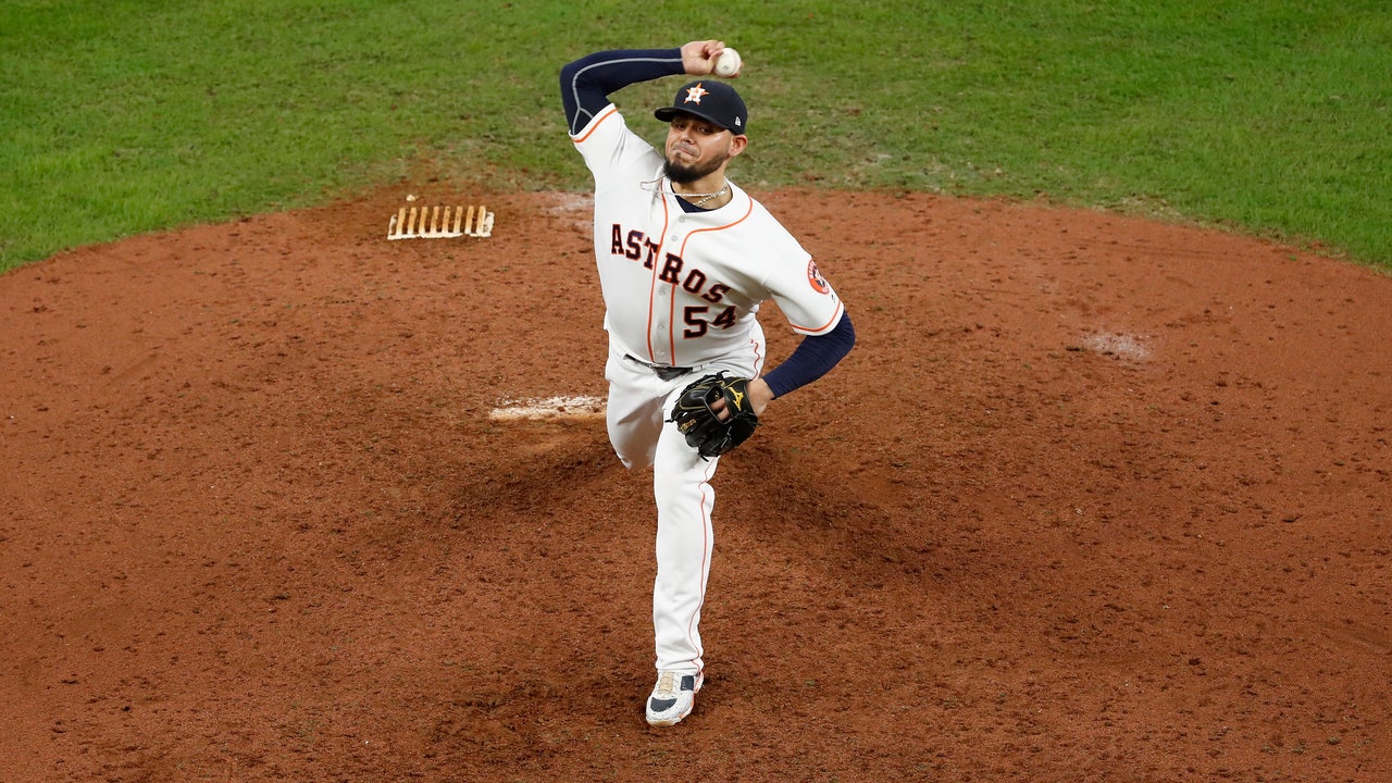 Roberto Osuna #54 of the Houston Astros pitches in the ninth inning against the New York Yankees during Game Six of the League Championship Series at Minute Maid Park on October 19, 2019 in Houston, Texas. (Photo by Tim Warner/Getty Images)
