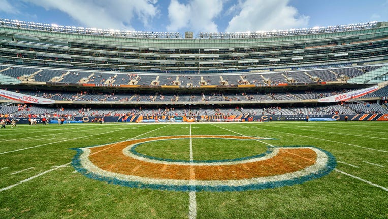 CHICAGO, IL - AUGUST 25: A general view of Soldier Field and the Chicago Bears logo is seen prior to game action in a preseason NFL game between the Kansas City Chiefs and the Chicago Bears on August 25, 2018 at Soldier Field in Chicago IL. (Robin Alam/Icon Sportswire via Getty Images / Getty Images)