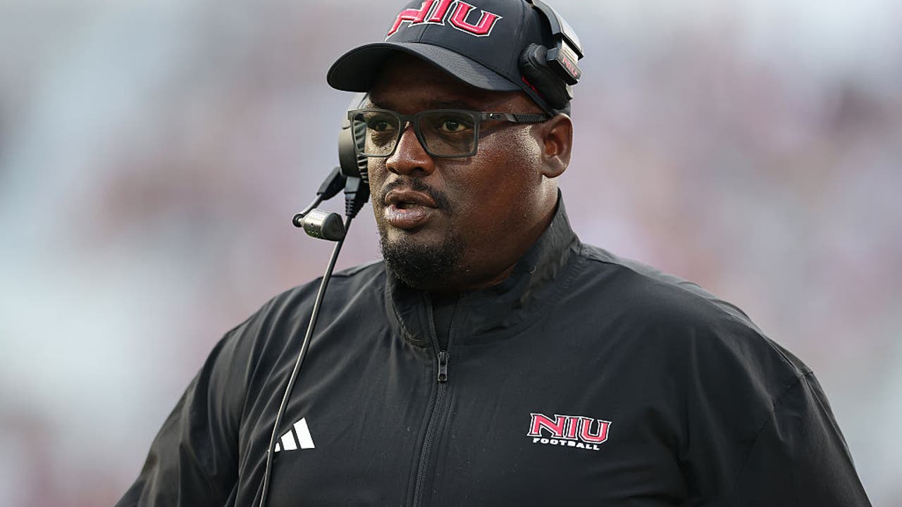 STARKVILLE, MISSISSIPPI - SEPTEMBER 20: Thomas Hammock, Head Coach of the Northern Illinois Huskies, is seen against the Mississippi State Bulldogs at Davis Wade Stadium on September 20, 2025 in Starkville, Mississippi. (Photo by Randy J. Williams/Ge
