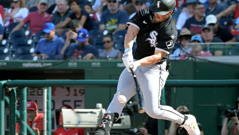 WASHINGTON, DC - SEPTEMBER 28: Chicago White Sox right fielder Dominic Fletcher (5) bats during the game between the Chicago White Sox and the Washington Nationals on September 28, 2025 at Nationals Park in Washington, D.C. (Photo by Mark Goldman/Ico (Mark Goldman/Icon Sportswire via Getty Images)