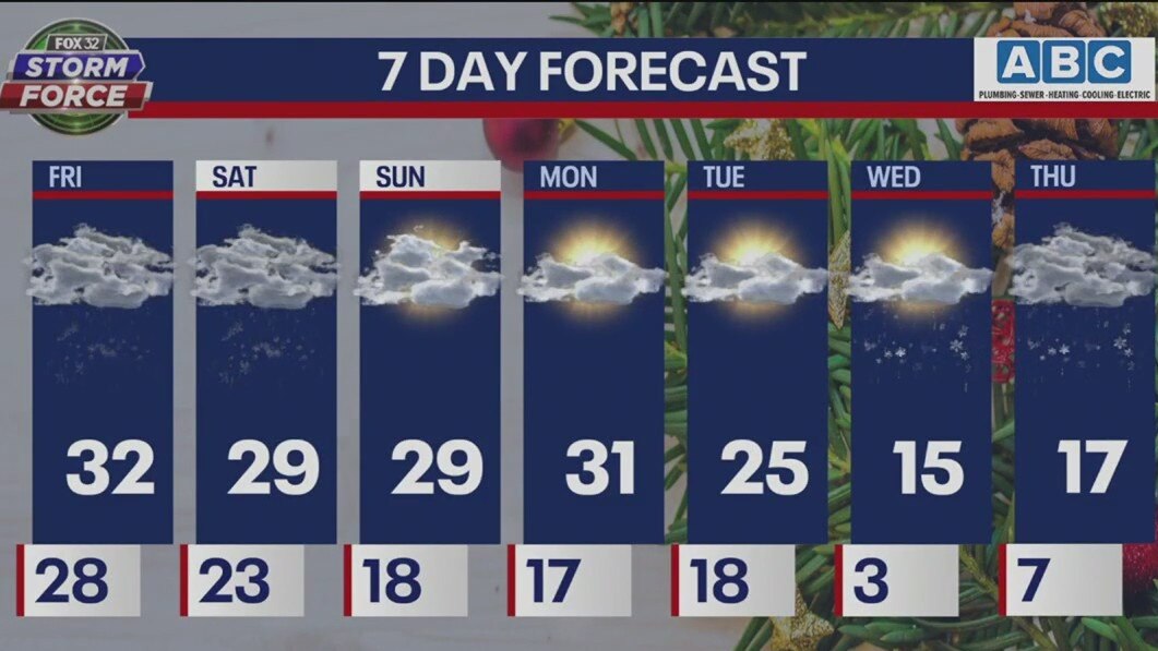Friday afternoon weather forecast for Chicagoland on Dec. 16