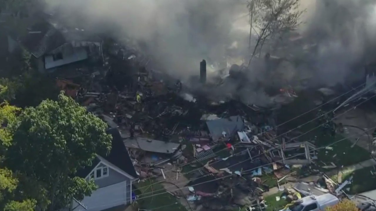 Aerial footage of home explosion in Woodstock (raw video)