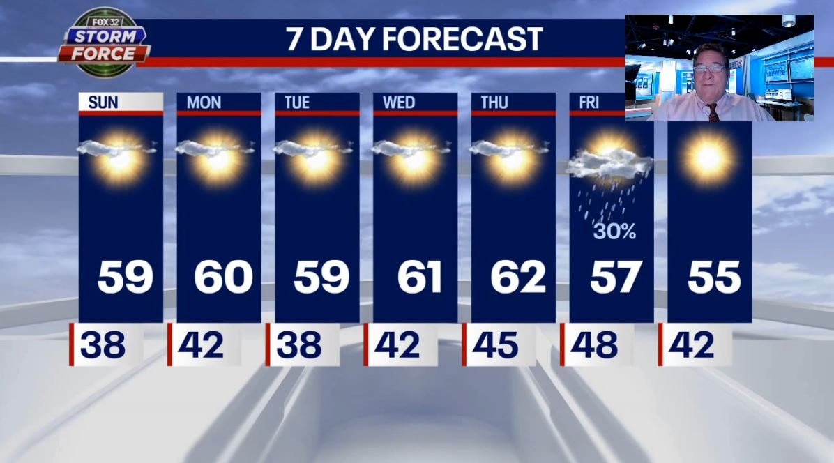 Get ready for some fantastic weather coming up this week. Highs will try to reach 60 Sunday with some gusty winds. Most of next week the high will hover around 60 degrees with plenty of sunshine.