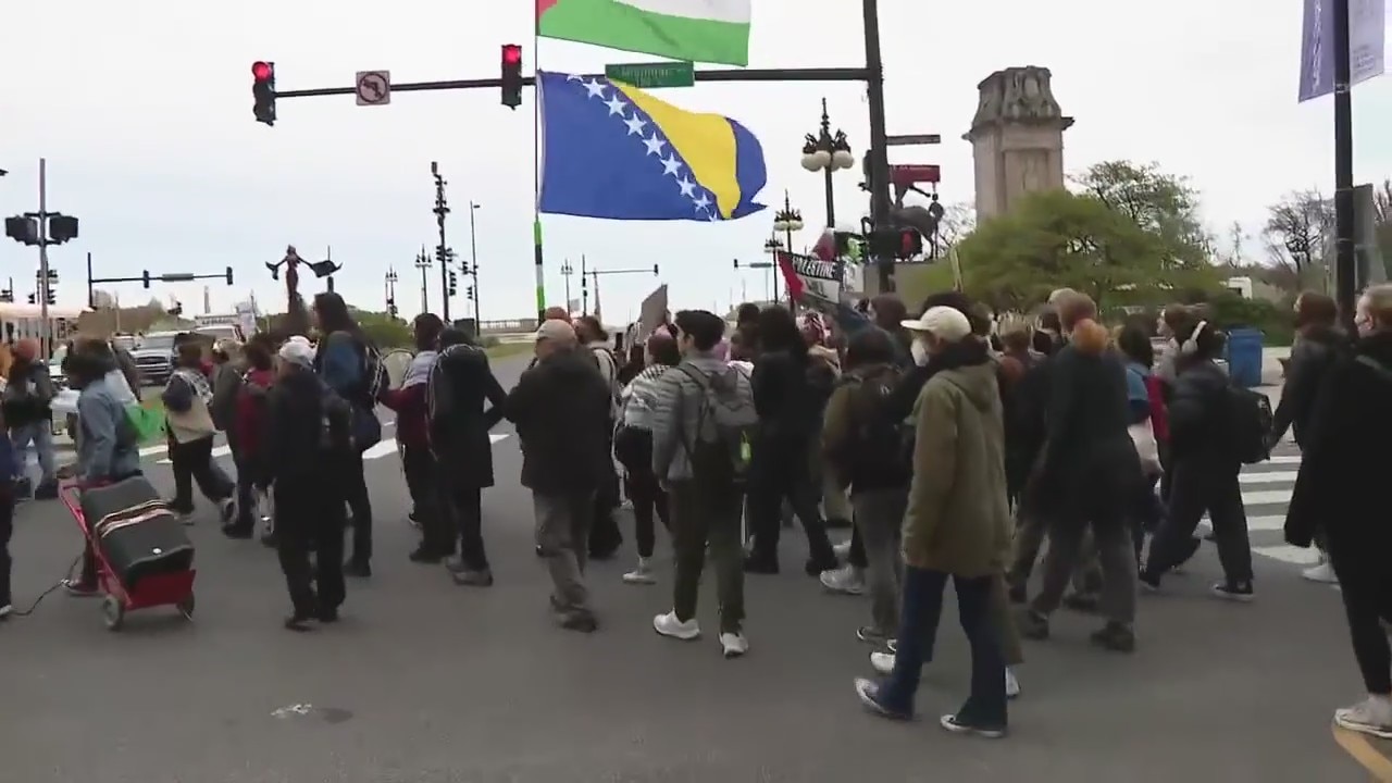 Chicago college students march downtown in support of Palestine