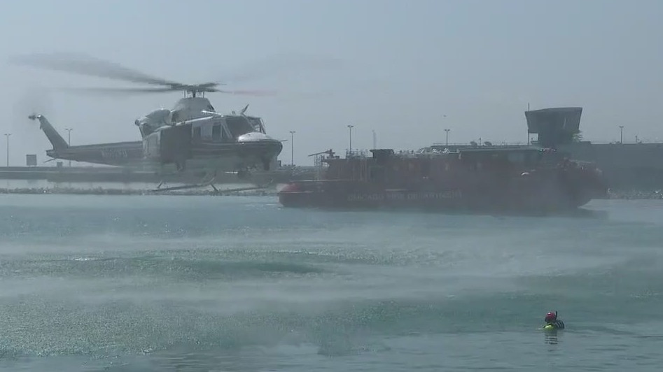 Helicopters, boats, dive teams and medical personnel were on hand to stage a water rescue Tuesday morning off Navy Pier.