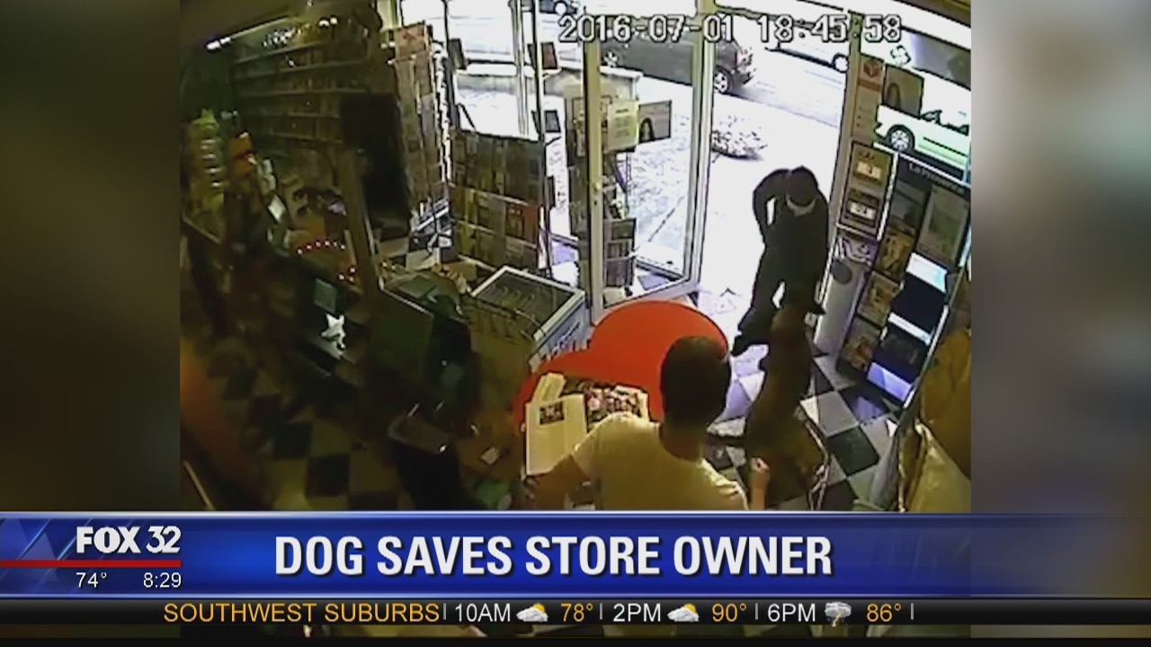 Courageous dog saves store owner