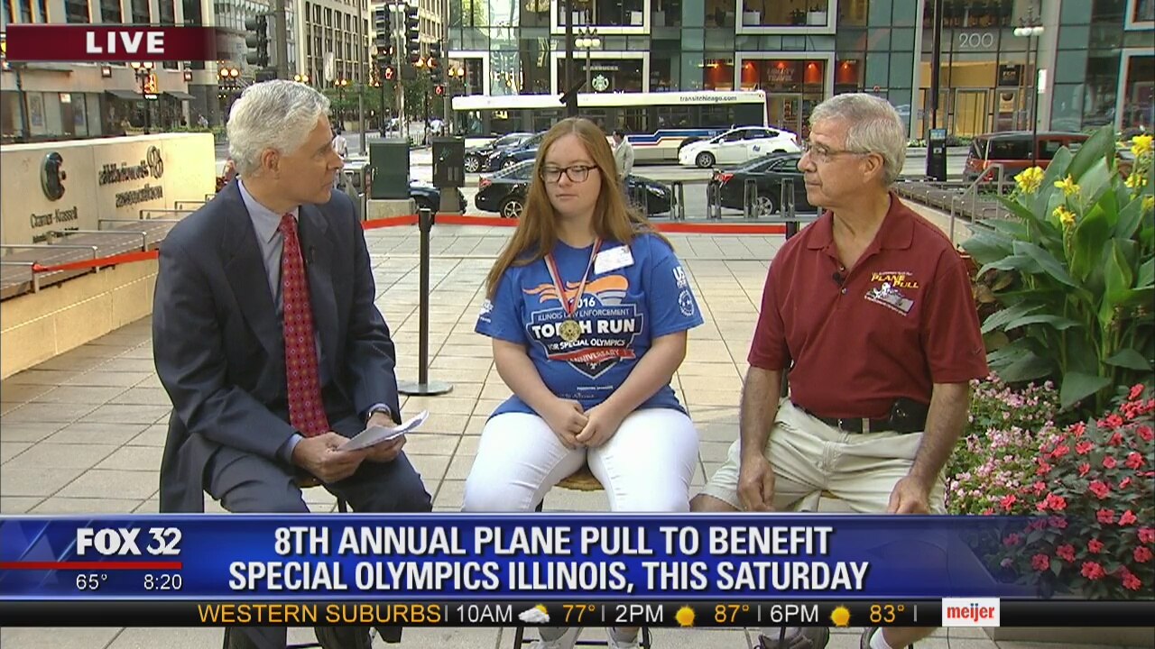 Joe Pena and Mallory Taylor talk about the plane-pulling event, the 8th Annual Plane Pull on Sept. 10, 2016 at O?Hare International Airport.