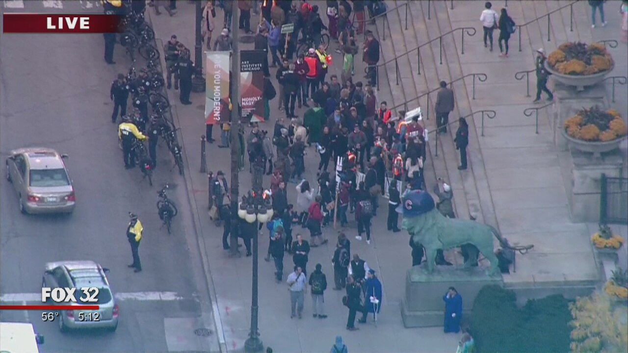 They're protesting outside the Art Institute of Chicago.