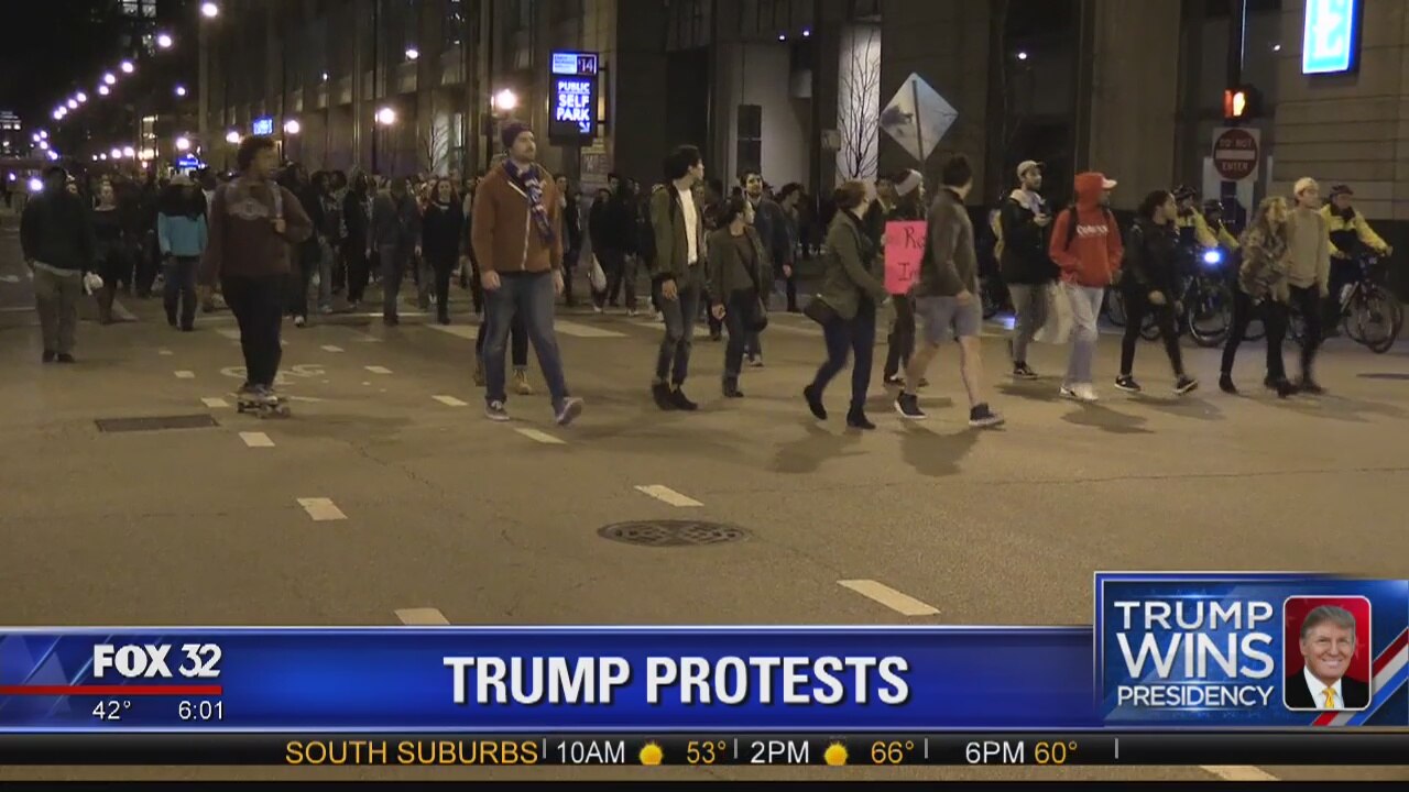 Chicago police say they arrested five people as protesters expressed their disapproval of the election of Donald Trump as the nation's 45th president.