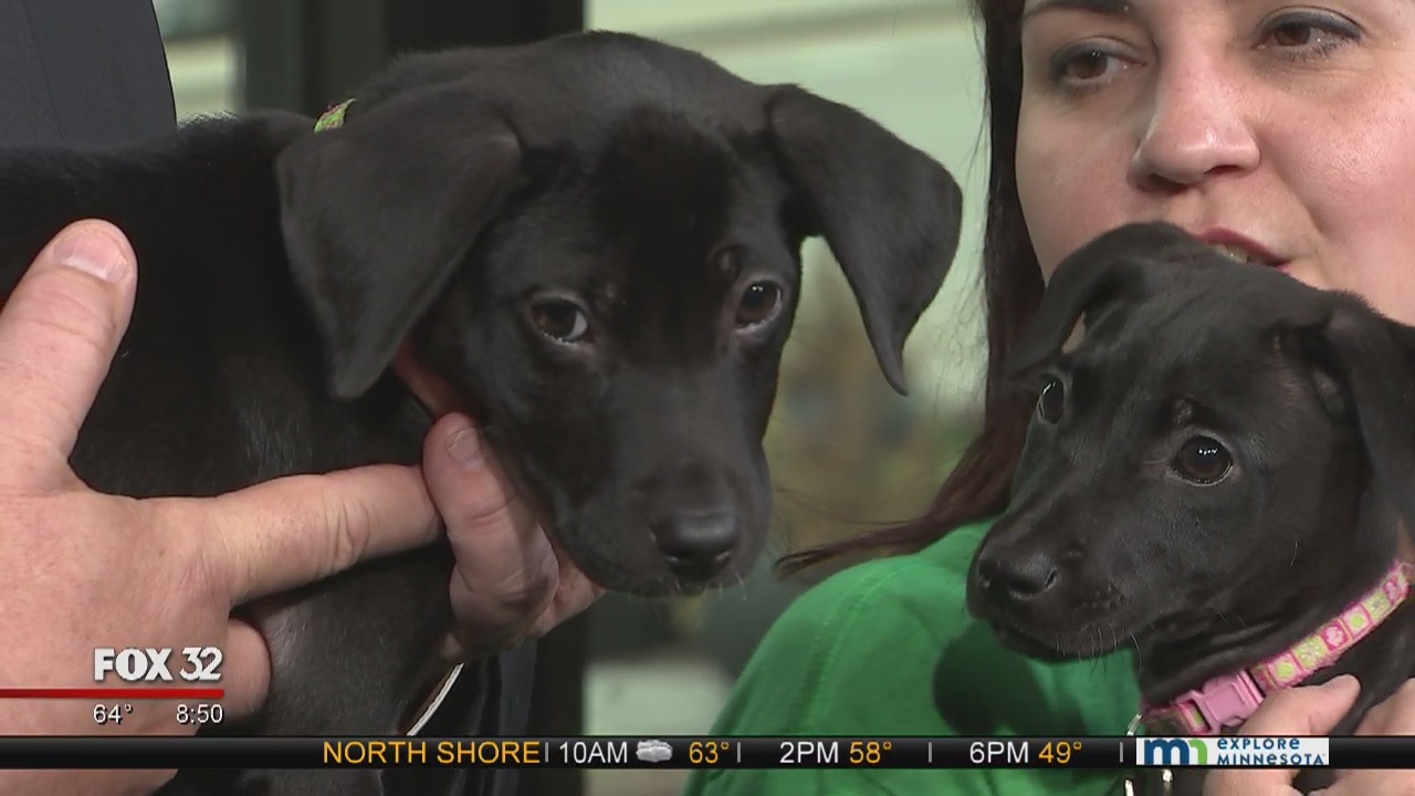 Lisa Velez from Save-A-Pet Illinois shows off two beautiful black lab puppies, Gene and Graceland, that are looking for their future homes.