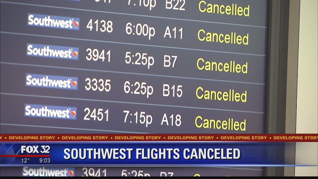 Hundreds of Southwest Airlines flights at Midway Airport were canceled Sunday due to an issue with a lack of de-icing fluid, according to the airline.