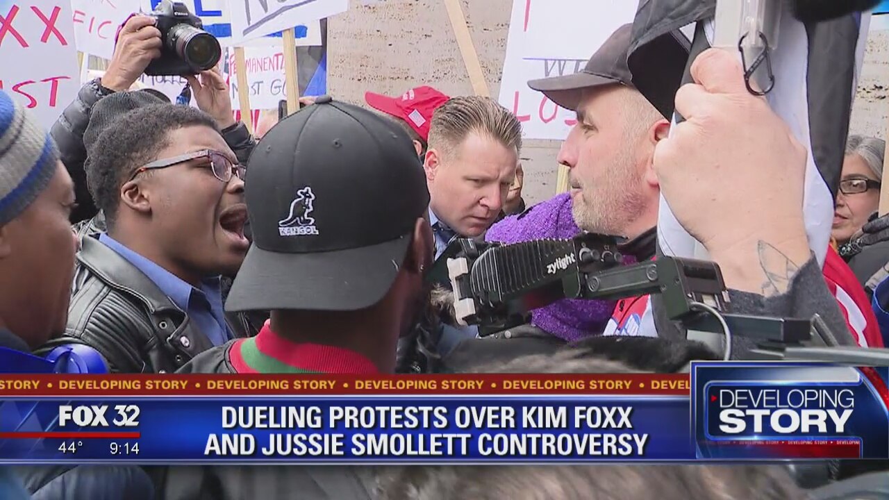 Dueling rallies in downtown Chicago supported and slammed Cook County State's Attorney Kim Foxx's performance in the Jussie Smollett case.